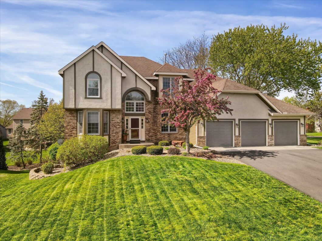 Discover this beautiful 4BR/4BA home rich in character and boasting exquisite curb appeal. Located in the highly sought-after Hunters Ridge Community, this residence offers a perfect blend of luxury and comfort. Step into an inviting great room with soaring 18-foot ceilings, a cozy gas fireplace, and a wet bar—perfect for entertaining. The gourmet kitchen, complete with stainless steel appliances, granite countertops, and a center island, is a chef’s dream. The main floor also includes a formal living room, a dining room, and a versatile office/den with elegant Glass French doors. The upper floor features four spacious bedrooms, including a luxurious primary suite, offering ample space for rest and relaxation. The finished walkout lower level is an entertainer’s paradise, featuring a wet bar, a large entertainment/recreation room, a gym, and direct access to a covered hot tub deck. Recent upgrades include a new Furnace & AC, new driveway, roof, gas fireplace, and fresh exterior paint. The home is also equipped with a central vacuum system, intercom, and surround sound throughout. Located next to Lebanon Hills Regional Park and Valleywood Golf Course, this home provides easy access to outdoor recreation and leisure activities. Don’t miss the opportunity to make this exceptional home yours!